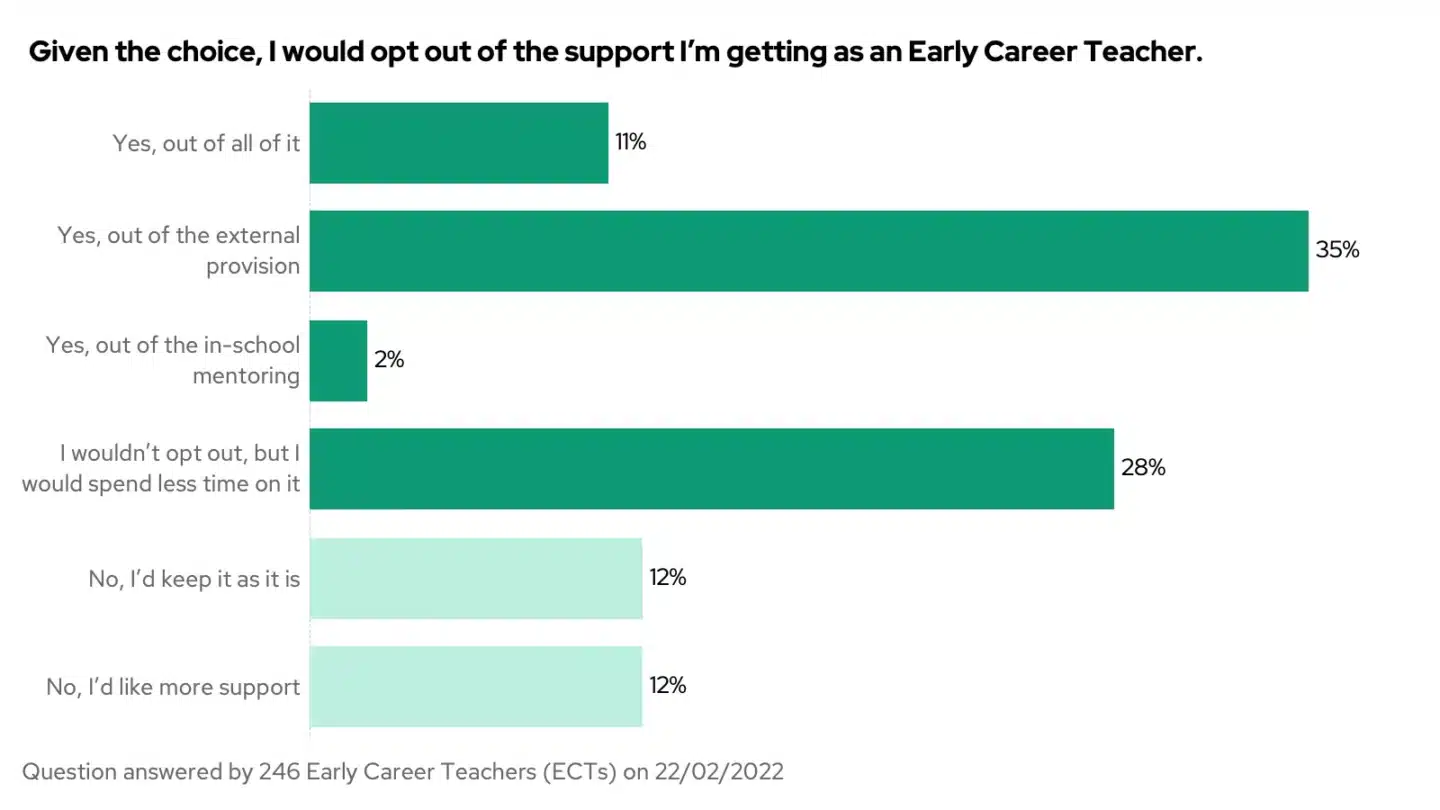 On the upside, ECTs really like their in-school mentors. Only 2% specifically said they’d opt out of the in-school mentoring support they receive.
