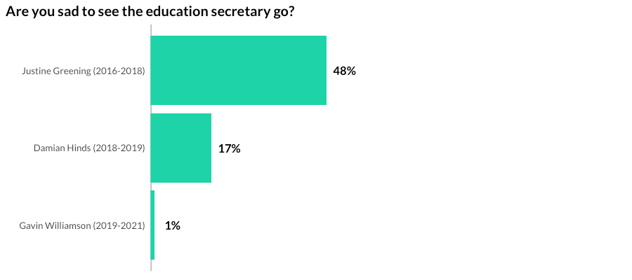 What does the future hold for the education secretary though? At the start of Gavin’s tenure in 2019, his state-school credentials made 50% of teachers more optimistic about his tenure. In fairness to Gavin, I don’t think he was taught pandemic studies (perhaps they will in the future!).